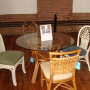 현재 2개만 남아 있으며, 사진에 보이는 제품만 단품으로 판매합니다. 테이블과 흰색 라탄 의자(파란 쿠션), 흰색 라탄 의자(초록 쿠션)는 판매 완료되었습니다. 재고는 판매 상황에 따라 변동될 수 있습니다.