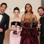 왼쪽부터 영화 ‘더 브루탈리스트(The Brutalist)’로 남우주연상을 수상한 애드리언 브로디, 영화 ‘아노라(Anora)’로 여우주연상을 수상한 마이키 매디슨, 영화 ‘에밀리아 페레즈(Emilia Perez)’로 여우조연상을 수상한 조 샐다냐, 영화 ‘어 리얼 페인(A Real Pain)’으로 남우조연상을 수상한 키어런 컬킨이 2025년 3월 2일 로스앤젤레스에서 열린 아카데미 시상식 오스카 행사장에서 포즈를 취하고 있다.