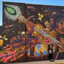 릭시(Rixy)의 2023년 공공 벽화 작품 ‘히타나: 황혼의 여행자(Gitana The Twilight Traveler)’가 매사추세츠주 로렌스(Lawrence, MA)에 전시되어 있다.