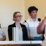 안드루 볼린스키(Andru Volinsky)가 2020년 선거 유세 행사에서 연설하고 있다.